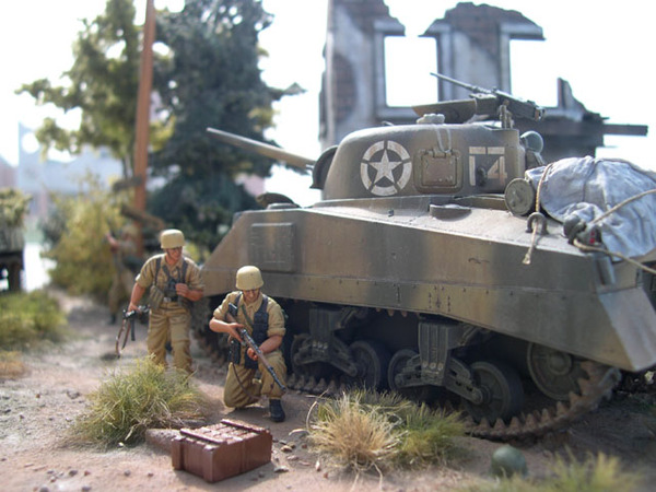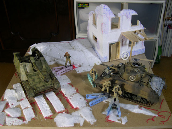 基本上三星人型明顯比威龍小了一號,小弟的處理方式是將兩種兵人在放置上有所區隔(你一國我一國),藉由兵人的姿勢和眼神將全場人物串聯在一起(天啊~我在說什麼!?@#$),總之,做出來應該就知道了啦~