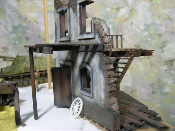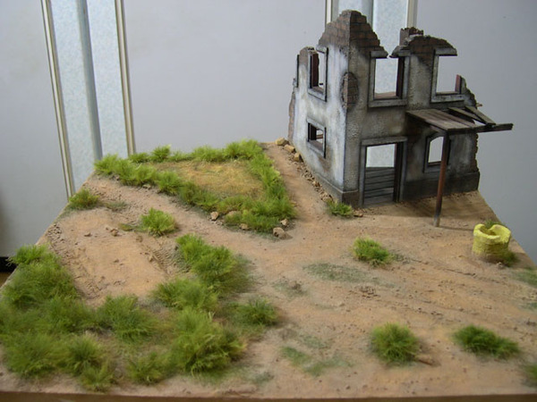 建築物處理方式為:預置陰影-上主色-修分界-高光,wash前噴上透明漆,不希望洗後黑鴉鴉的一片。